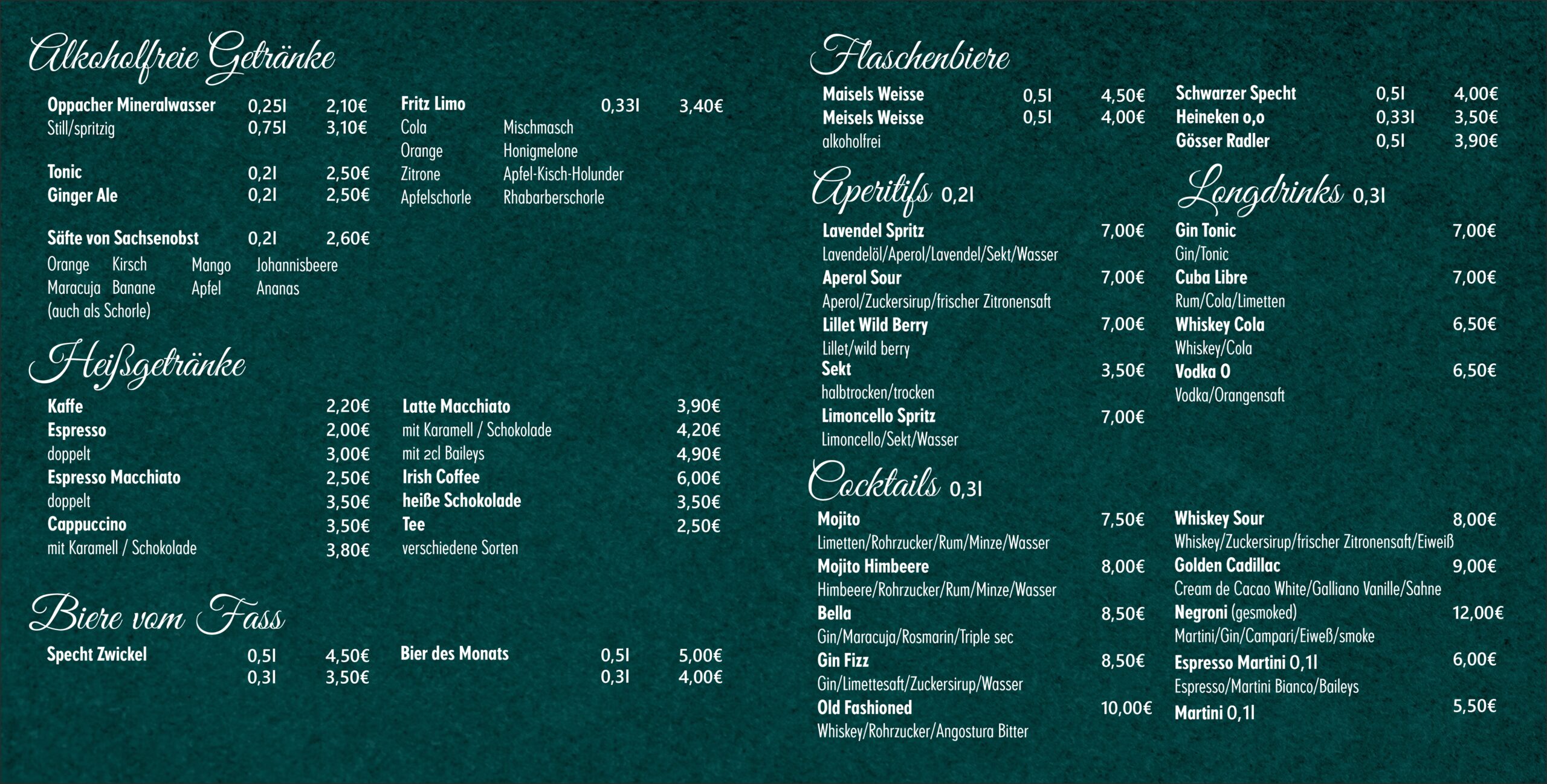 Unsere Speiße und Getränke werden mit Liebe und Handgefertigt